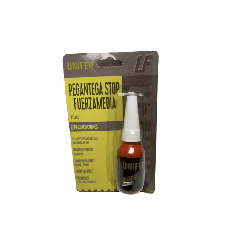 Traba química anaeróbica, sin solvente, que polimeriza (seca, cura, endurece) en ausencia de aire y al estar en contacto entre dos superficies metálicas, fijándolas, reteniéndolas, bloqueándolas e impidiendo su aflojamiento. Para el uso en uniones roscadas de resistencia media. Absorbe los golpes y vibraciones, impidiendo el aflojamiento, el desajuste y la pérdida de las piezas.
