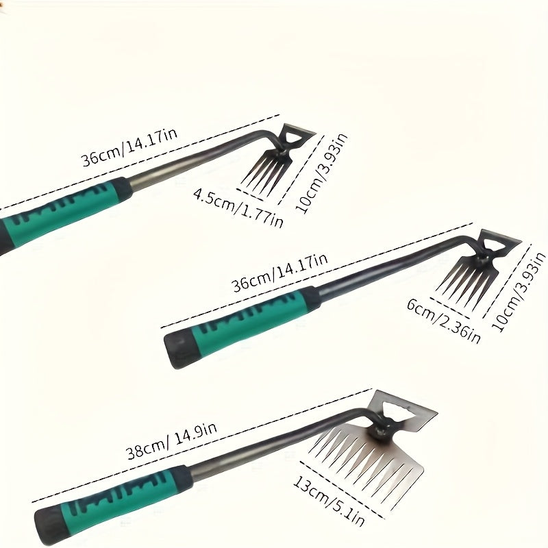 1 pieza Herramienta de Deshierbe Duradera de Acero al Manganeso - Rastrillo de Jardín Portátil con Mango Verde Ergonómico para la Fácil Eliminación de Suelos y Verduras Silvestres, Pala Manuales de Doble Propósito para Tareas de Jardinería, Jardinería Ma