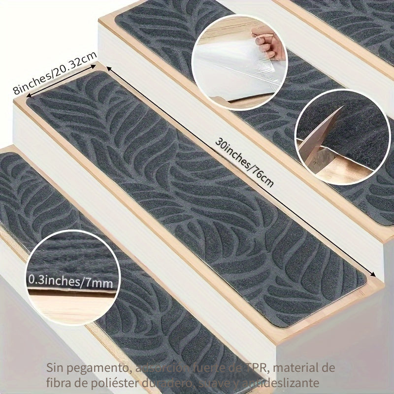 14 piezas de tapetes antideslizantes para escaleras - 76.2 cm x 20.32 cm, autoadhesivos, lavables, de poliéster, para seguridad en el hogar y la oficina
