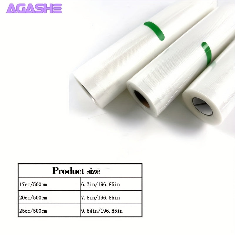 3 Rollos de Bolsas de Almacenamiento al Vacío Reutilizables AGASHE - Sin BPA, Herméticas y Sellado Rápido para Conservación de Alimentos, 3 Tamaños para Todas las Seleradoras al Vacío, Resistentes a la Congelación & Duraderas para Organización de Cocina