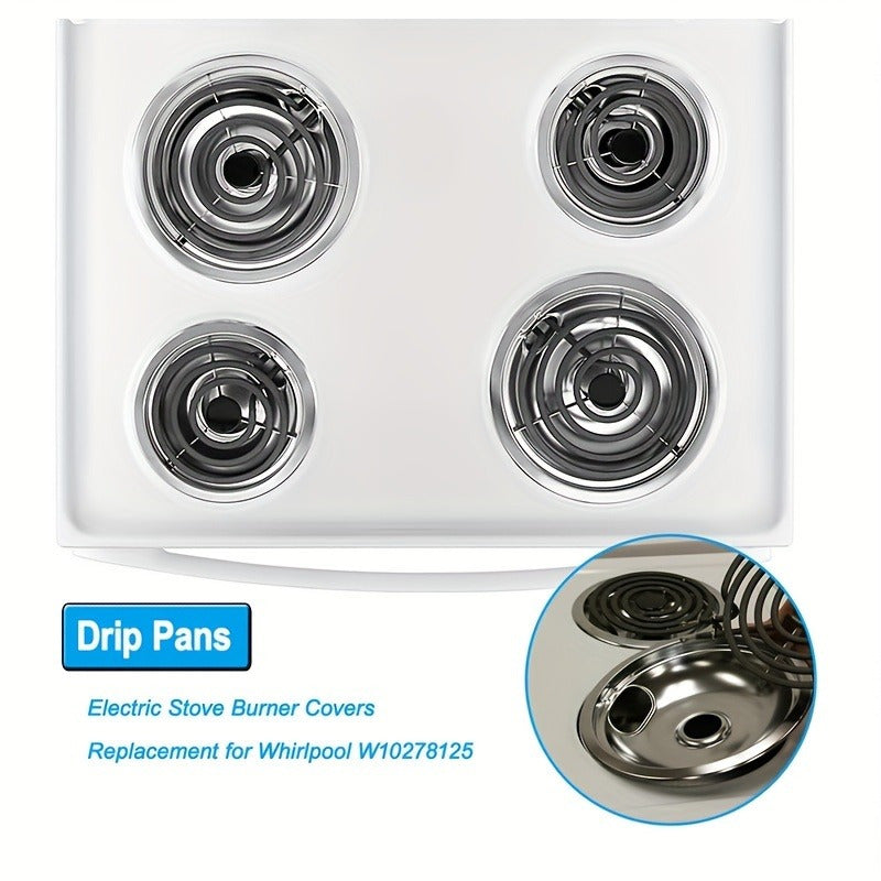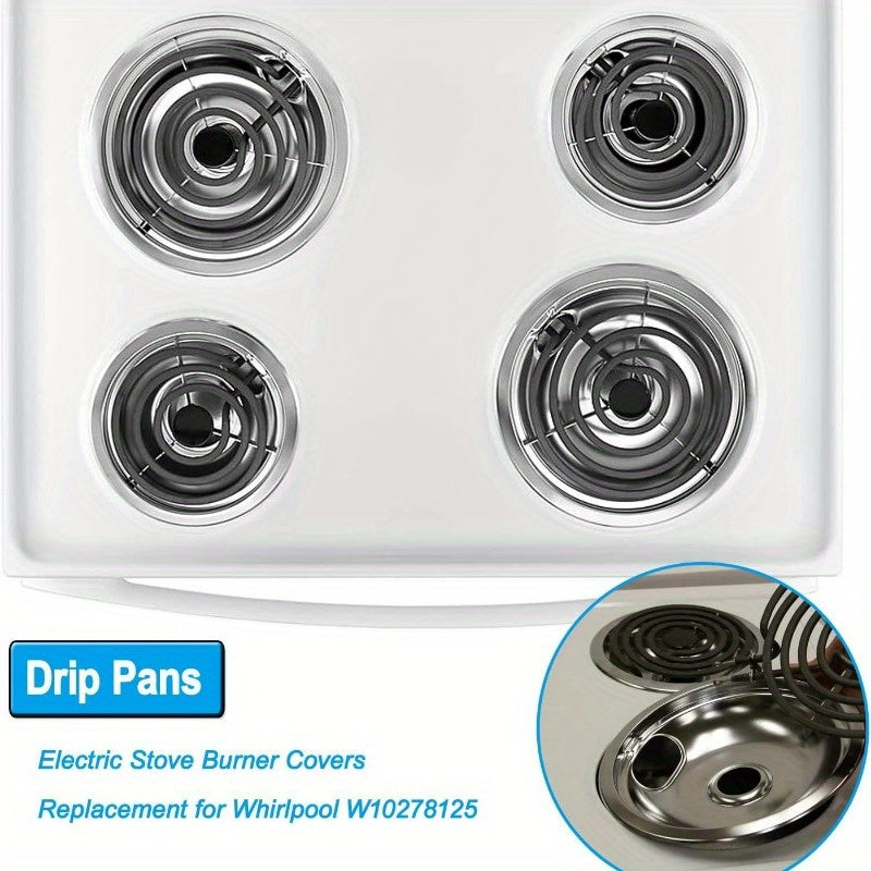 4 piezas de cobertores de quemador de estufa de acero inoxidable, bandeja de goteo de repuesto para Whirlpool W10278125, tamaños 5.08x15.24cm y 5.08x20.32cm, accesorio de cocina