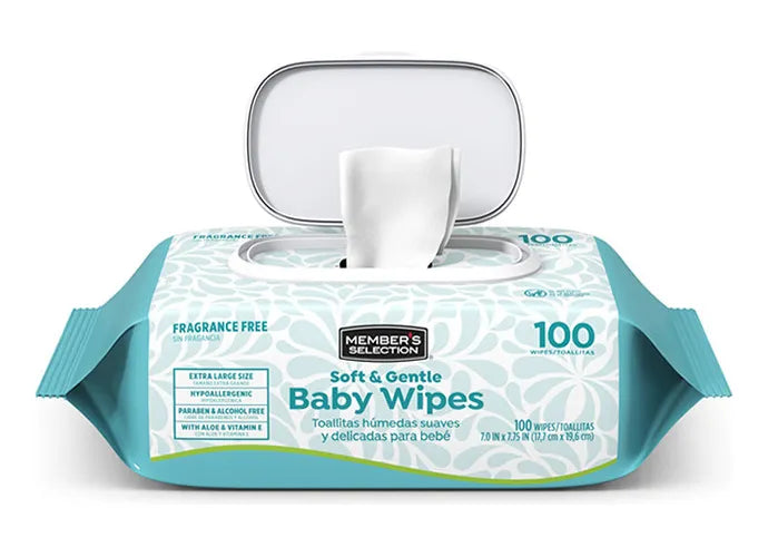 Cada toallita para bebé Member's Selection es resistente, con textura suave y sin alcohol para que no irrite la piel del bebé. Su suave solución limpiadora contiene aloe y vitamina E para ayudar a humectar la piel del bebé. Dermatológicamente probada y aprobada por pediatras.