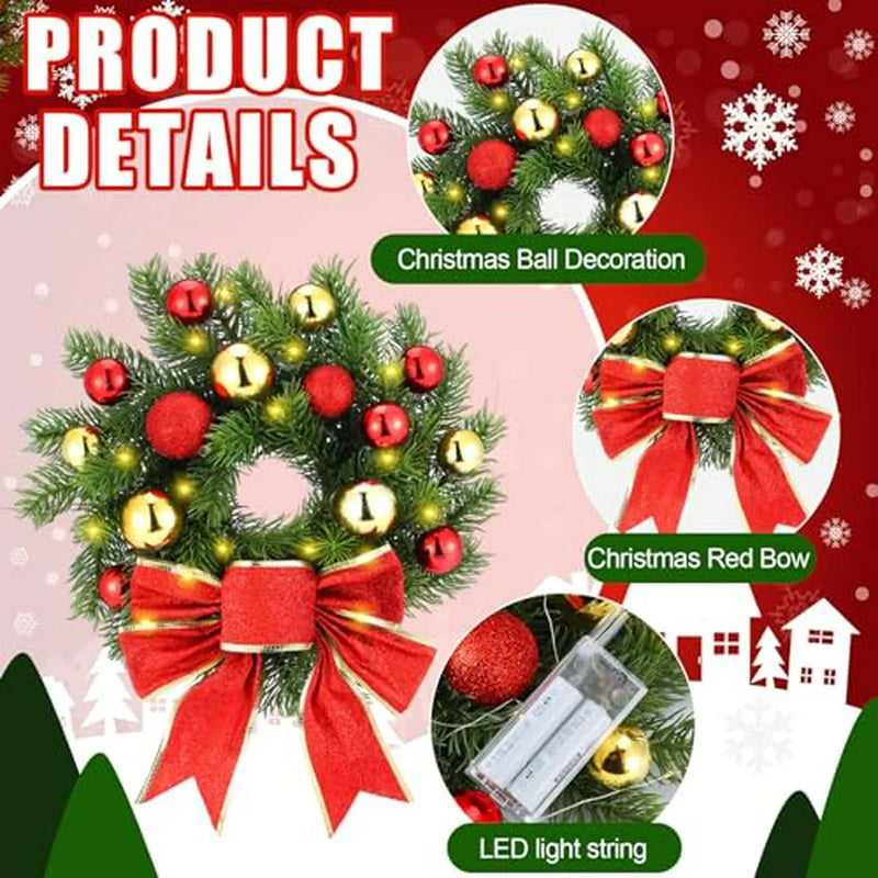 Adorno Navideño Para Coche Con Luces Led Y Lazo Rojo