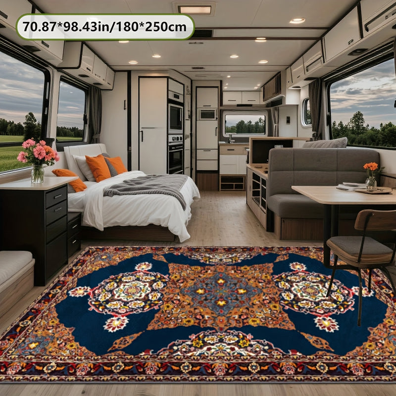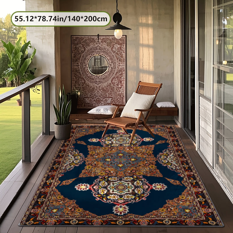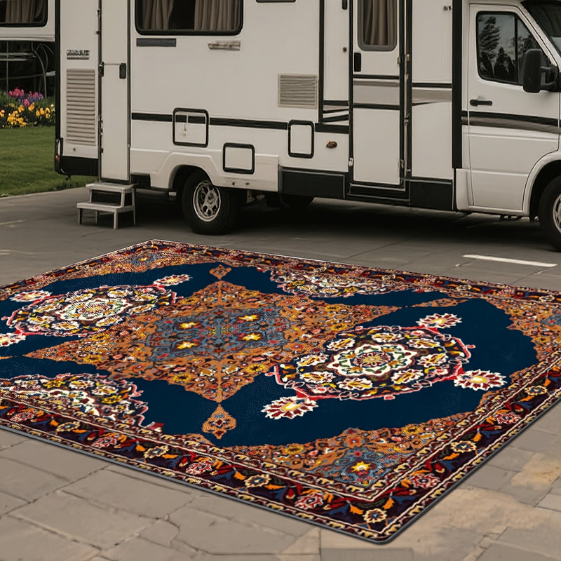 Alfombra Decorativa de Terciopelo Diamante Dorado + Base Antideslizante Plástica, Estampado 2D con Patrón Tradicional Exquisito, Estilo Clásico para Picnics, RVs, Balcones, Terrazas y Camping, Uso en Interiores y Exteriores, Varios Tamaños Disponibles