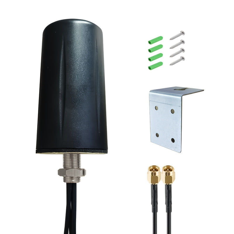 Antena omnidireccional 4x4 MIMO 4G/5G con montaje de tornillo - 3,05 metros de coaxial/SMA masculino, alta ganancia 2,5dBi/3,5dBi, doble polarización, 2,4 GHz-2,6 GHz/3,3 GHz-3,6 GHz, 4x4 MIMO para una mayor capacidad y cobertura, antena exterior 4G LTE,