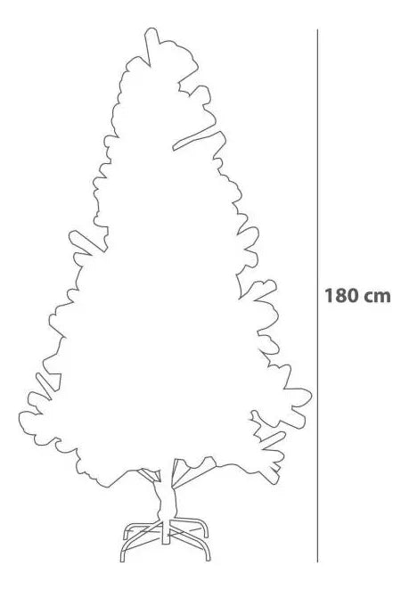 Árbol clásico, tipo pino, de 210cm de alto, ramas en PVC resistente, empacado en su caja delgada y protegida.
