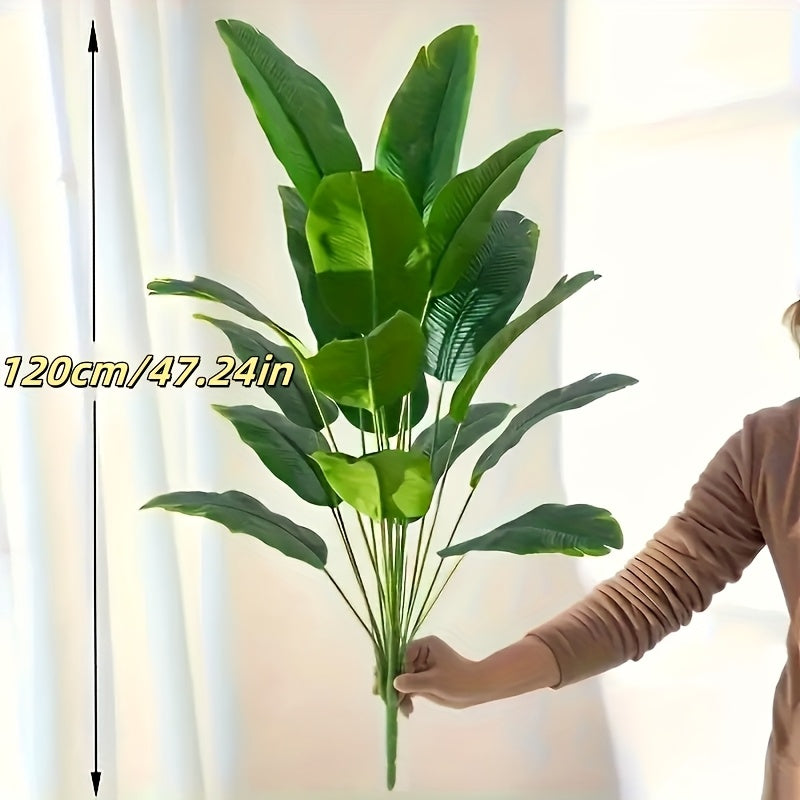 Arbusto artificial de plátano gigante de 4 estaciones de 47,24 pulgadas - 24 hojas grandes, 11,81 pulgadas, ideal para hogar, hotel, oficina, bodas, fiestas, decoración de porches, jardines de cajas de ventanas, perfecto para el Día de Acción de Gracias