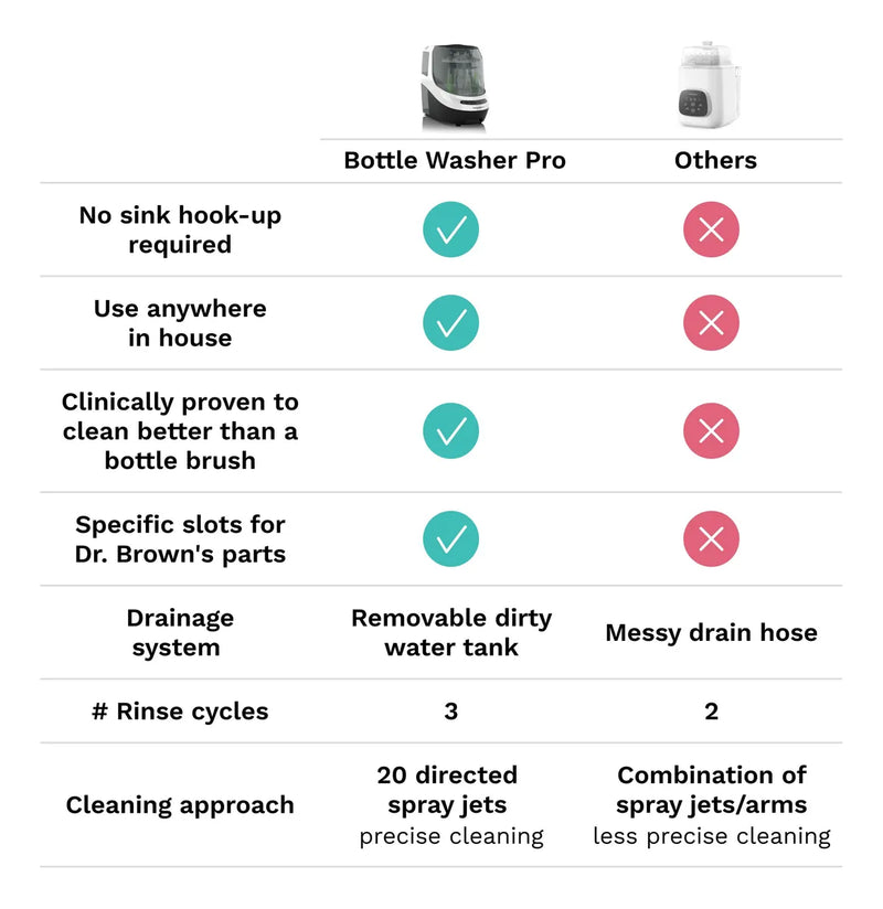 Limpieza todo en uno: lava, esteriliza y seca automáticamente botellas, piezas de bomba, tazas y accesorios por dentro y por fuera Solo la lavadora clínicamente probada para limpiar significativamente mejor que un cepillo para botellas Te ahorra un tiempo valioso en la limpieza