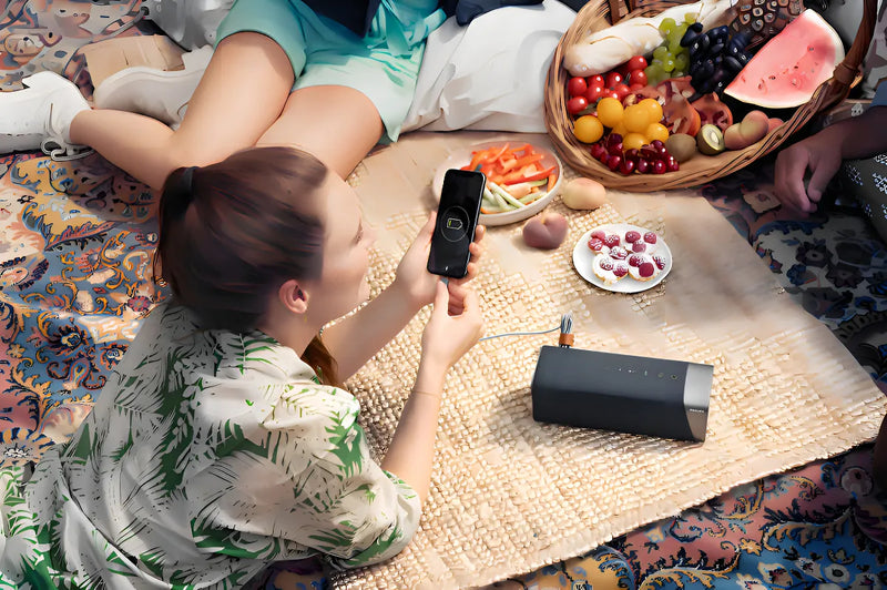 Reproduce lo que te encanta con el altavoz Bluetooth que luce muy bien en cualquier situación. Obtendrás 20 horas de tiempo de reproducción y un sonido intenso con graves agradables. Tiene una función de reserva de energía para cargar teléfonos y la tela del altavoz de mezcla de lana agrega estilo.