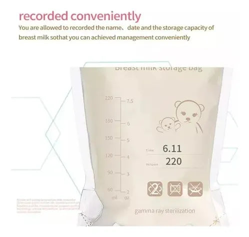 30 bolsas de almacenamiento de leche materna de 220 ml