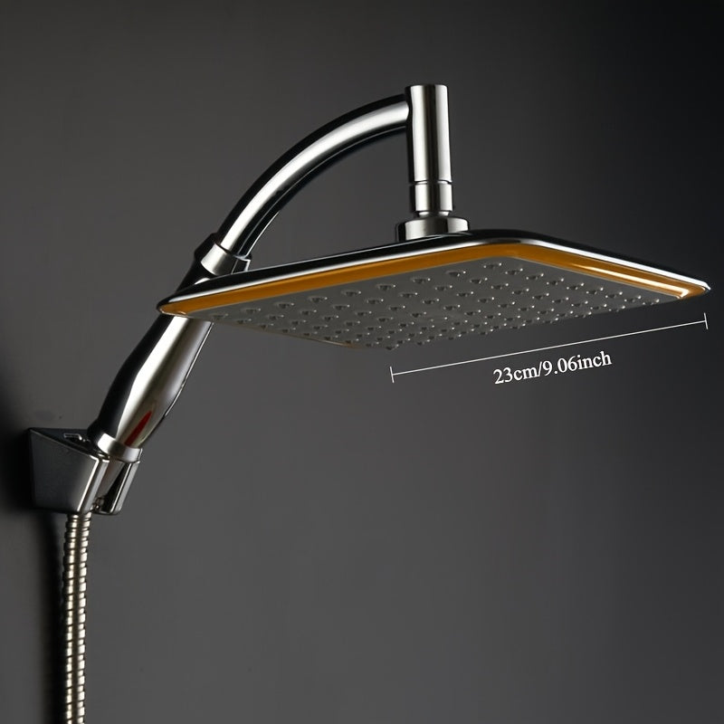 Cabezal de ducha ajustable de 9 pulgadas con boquilla de mano, diseño de lluvia cuadrada montado en pared, acabado cromado, material de plástico, ideal para baños de hogar y hoteles