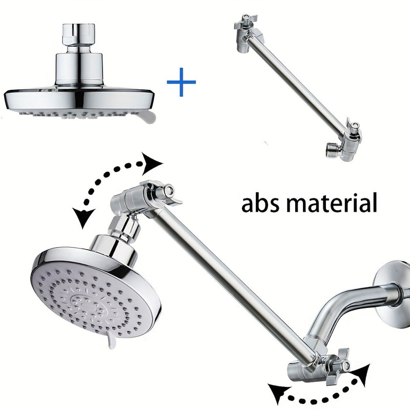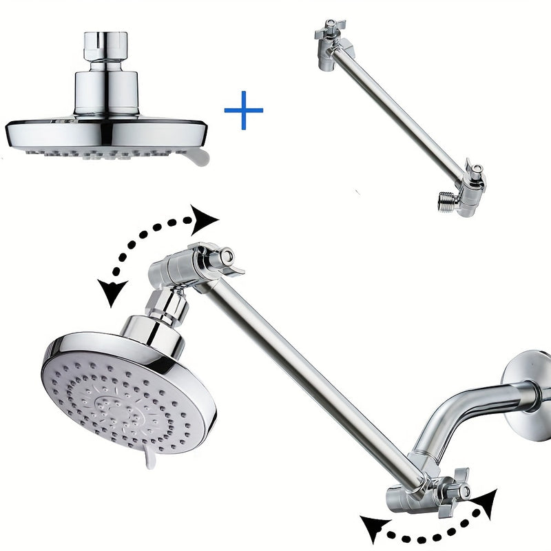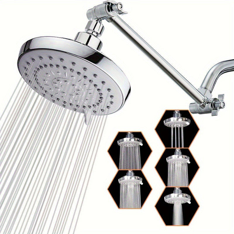 Cabezal de ducha de lluvia de alta presión ajustable de 5 modos con diámetro de 5" (12,7 cm) y brazo de extensión de 10" (25,4 cm) - Acabado pulido, montaje en pared, no requiere electricidad, plástico duradero para uso doméstico y comercial, cabezal de
