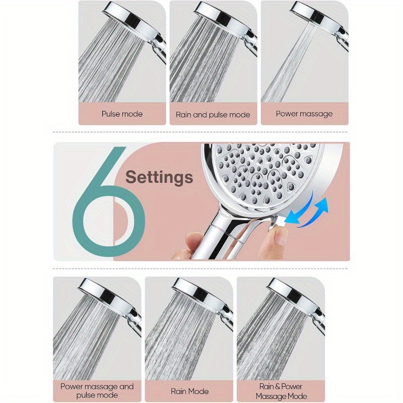 Cabezal de ducha portátil con filtro y 6 modos de aspersión - Alta presión, perlitas suavizadoras del agua para agua dura, eliminación del cloro - Reduce la sequedad y picazón de la piel, acabado cromado, inserto de pared/montaje, material ABS, cabezal d