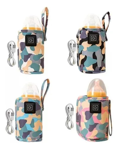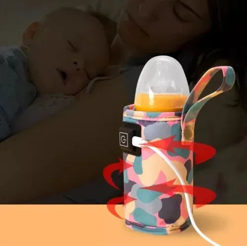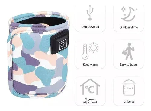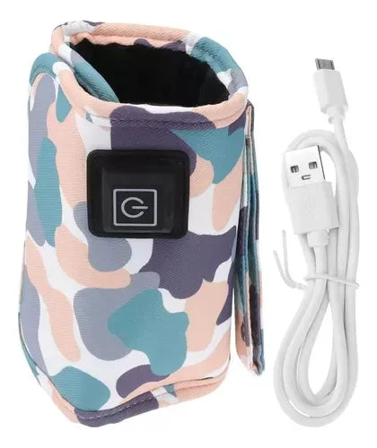 Carga USB: viene con cable USB, simplemente conecte el cable en cualquier banco de energía, USB del vehículo o interfaz del ordenador portátil. El bolsillo adicional de nuestro calentador de botellas puede colocar un banco de energía, te ayuda a calentar la leche en cualquier lugar.