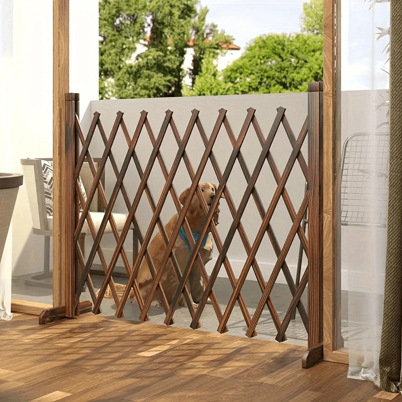 Cerca de jardín de madera ajustable sin taladro, diseño de celosía retráctil para pantallas de privacidad interior/exterior, seguridad para mascotas, plantas trepadoras, madera resistente a la intemperie, fácil instalación para patio, balcón, jardín, pan