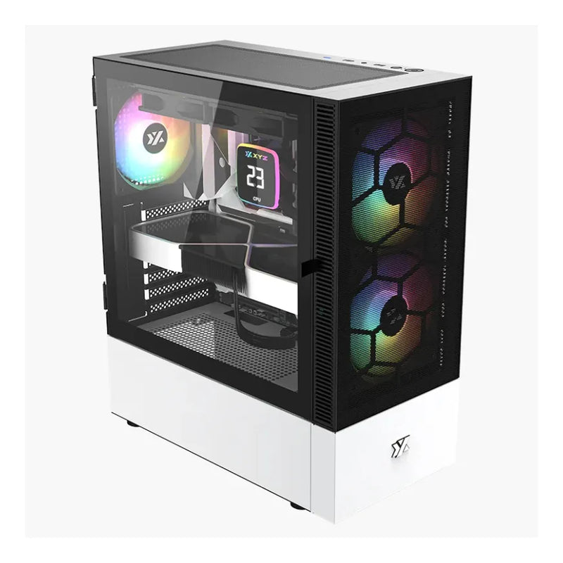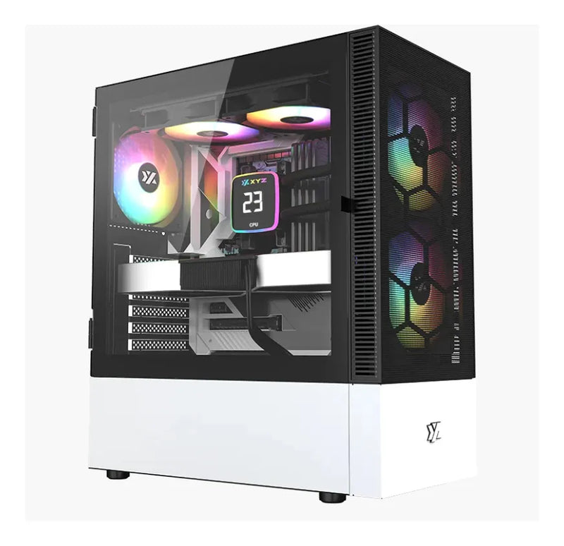 Chasis Xyz Airone 100 Mesh Negra 6.fan Argb Vidrio Templado Negro