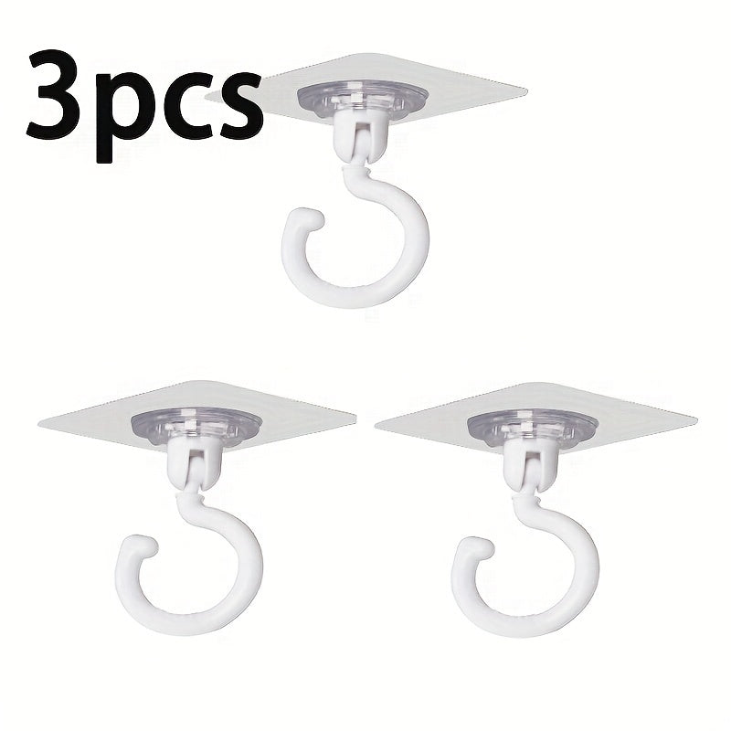 Conjunto de 3 ganchos de techo autoadhesivos y giratorios 360°, soporte de pared sin taladro para dosel de cama, mosquiteros, bufandas y almacenamiento de bolsos