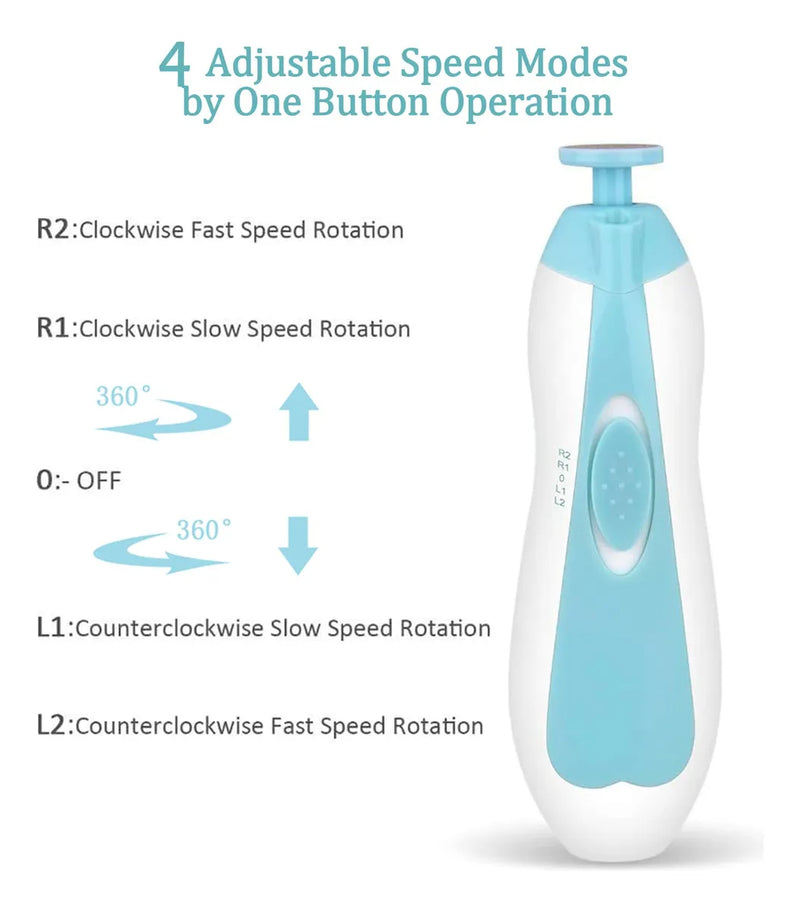 ,-Velocidad ajustable: nuestro cortaunas para ninos pequenos es facil de usar con un boton, ajusta la velocidad y la rotacion. El exquisito recorte y pulido de 360° hace que las unas de los pies y las unas sean mas suaves y suaves