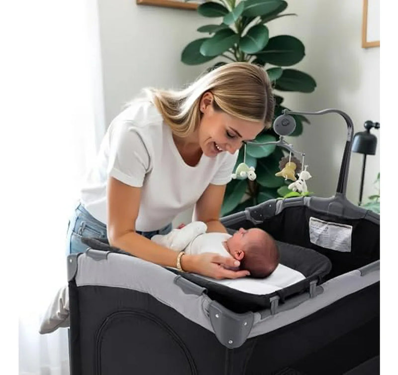 - **Múltiples formas de uso:** Se convierte en una mesa de cambio para facilitar el cambio de pañales sin necesidad de agacharse. Se convierte en un parque infantil, permitiendo liberar las manos para hacer tareas del hogar. Se convierte en una cuna al lado de la cama.