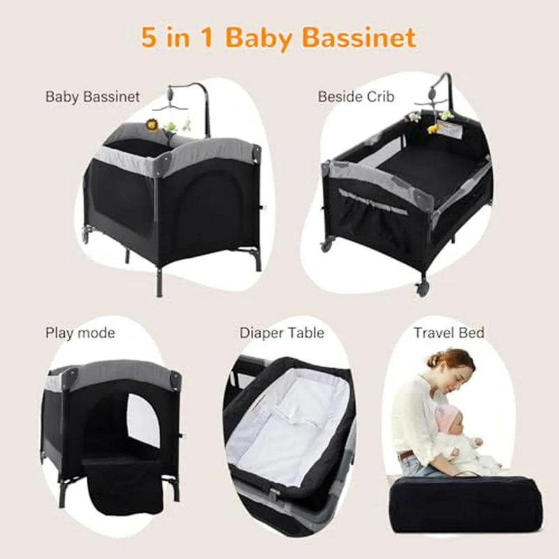- **5 en 1:** Cuna para bebés recién nacidos, cuna al lado de la cama, cuna portátil de viaje, incluye colchón.