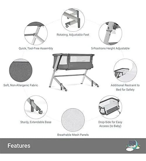 NOMBRE EN ESPAÑOL: Cuna colecho y moisés portátil, gris, ajustable, plegable