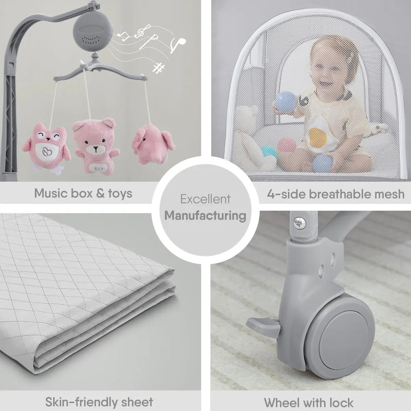 Spacious Entertainment Space The Bottom Layer Can be Used as a Playard, available from baby to toddles 03 years old. Provide the closer space for motherinfant interaction