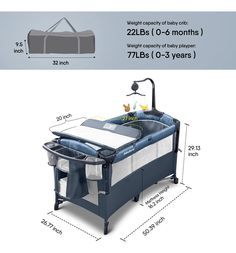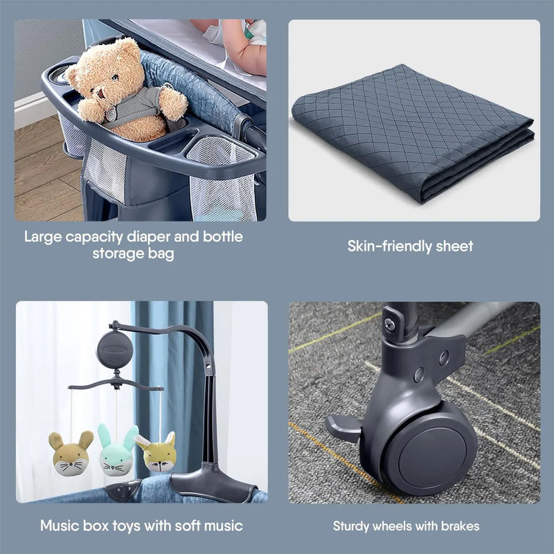 Cuna De Noche Portátil Con Sábana Cambiador Y Móvil De Músic
