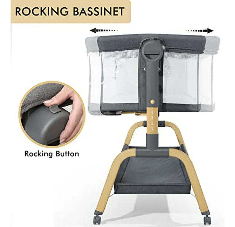 NOMBRE EN ESPAÑOL: Cuna Mecedora 3 en 1 con Almacenamiento y Ruedas, Ajustable
