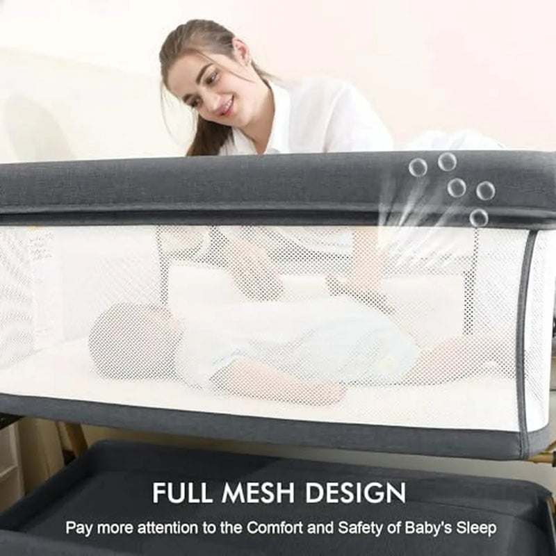 Cuna Mecedora 3 En 1 Con Almacenamiento Y Ruedas, Ajustable