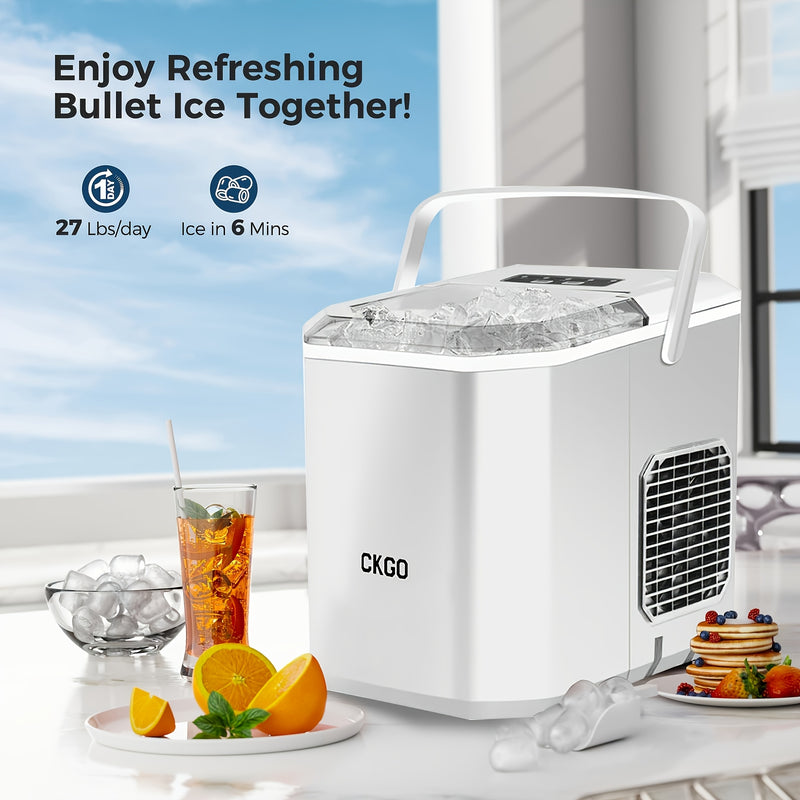 Fabricadora de hielo portátil CKGKO 2025, hace hielo en 6-8 minutos, silenciosa, ideal para casa, cocina, camping, RV, incluye cuchara y canasta para hielo, perfecta para viajes, actividades al aire libre y maratones, diseño moderno y duradero