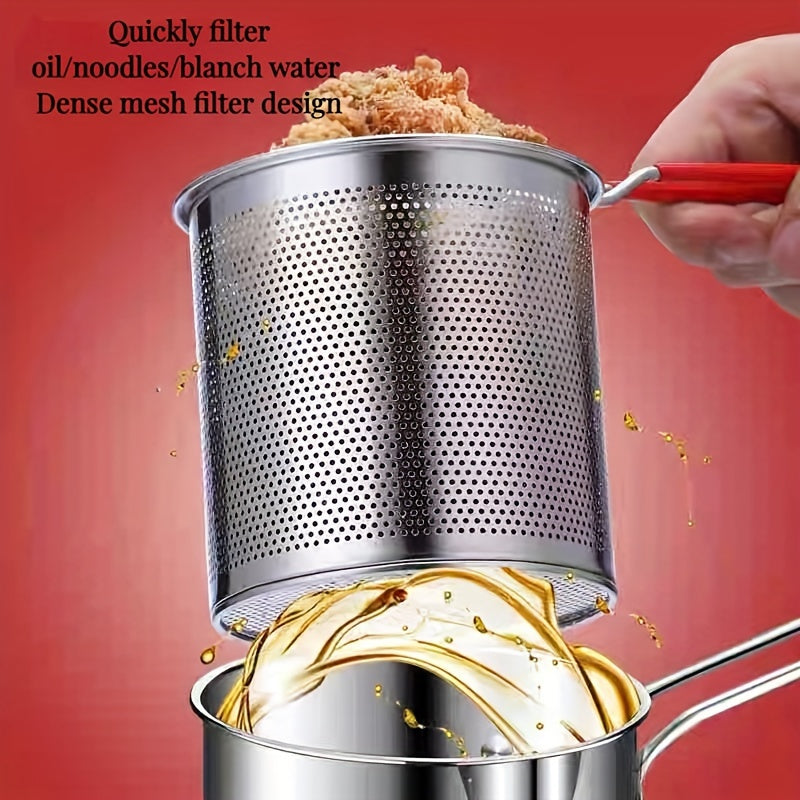 Freidora de acero inoxidable con cesta y clip - Mini freidora de 1,2 l sin carga y de bajo consumo para cocinas de inducción y gas, perfecta para freír patatas fritas, pollo, nuggets - Utensilios de cocina con mango