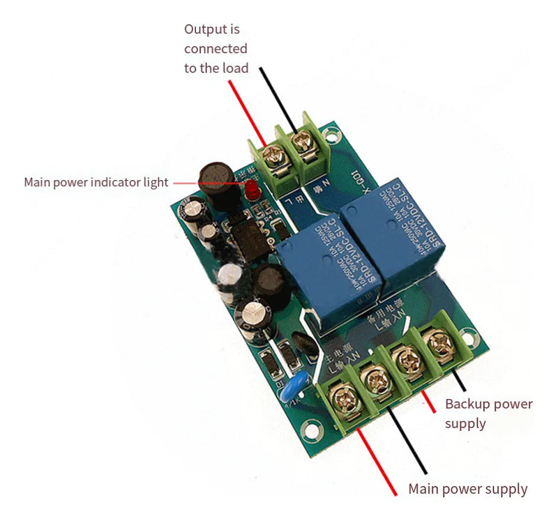 Diseño de doble entrada y salida única: con dos conexiones de entrada (alimentación principal y de respaldo) y 1 salida estable, este módulo proporciona un suministro de energía confiable a su equipo, lo que lo hace ideal para aplicaciones críticas.
