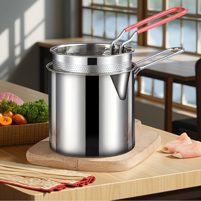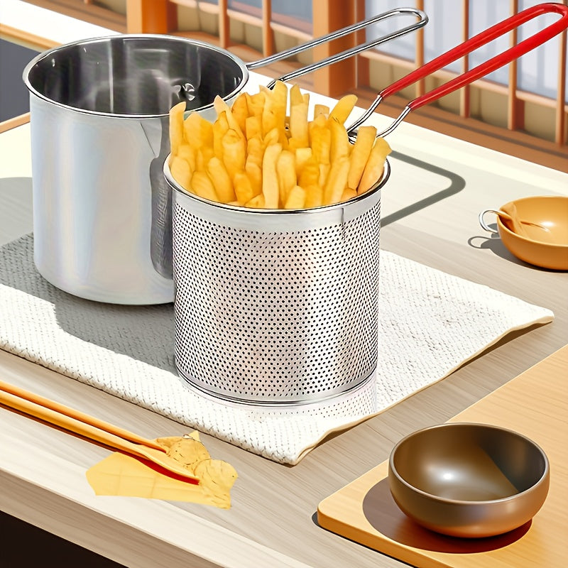 Juego de Freidora y Colador de Acero Inoxidable - Compacto y Fácil de Usar - Ideal para Papas Arrugadas, Patatas Fritas, Pescado y Pollo - Herramienta Esencial en la Cocina del Hogar