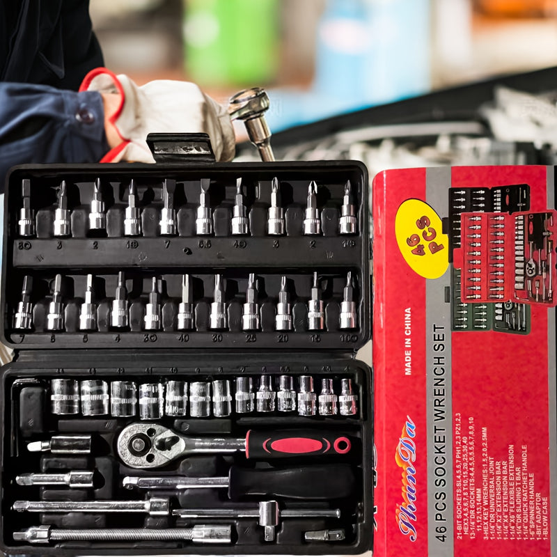 Juego de herramientas de 46 piezas de acero cromo vanadio, kit de llaves multifuncionales templadas, alto torque, portátil para mantenimiento de autos, bicicletas y motocicletas