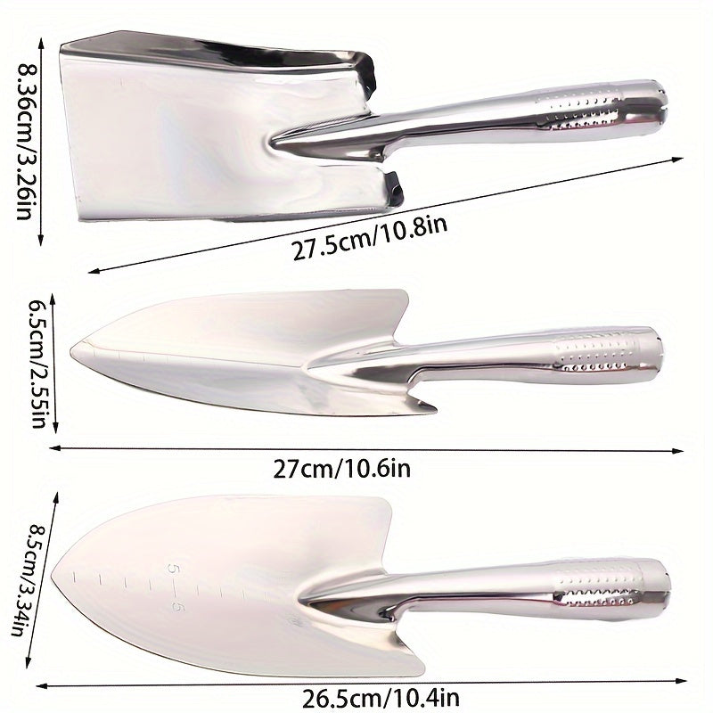 Juego de herramientas de jardín de acero inoxidable - Pala y pico duraderos con escala de medida, mango ergonómico para jardinería doméstica, ideal para plantar, rastrillar y cavar, juego de herramientas de jardín esencial | Conjunto de herramientas mini
