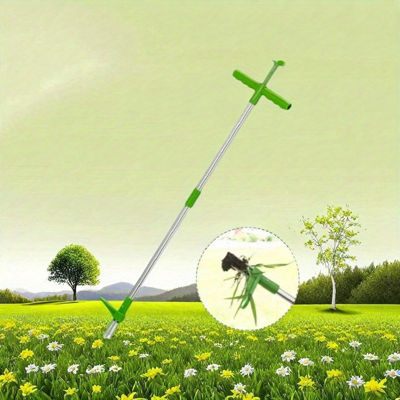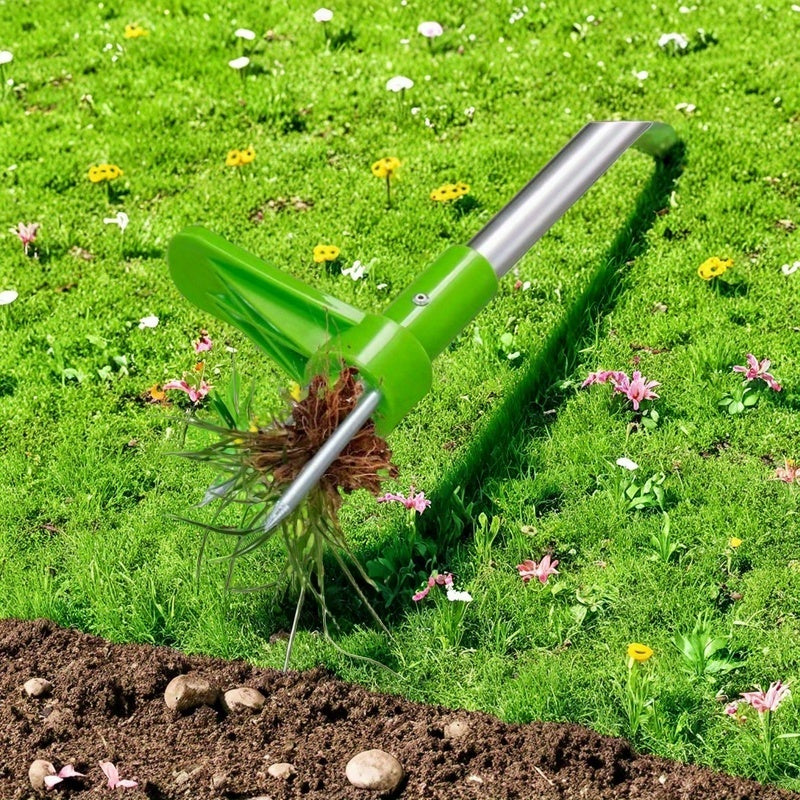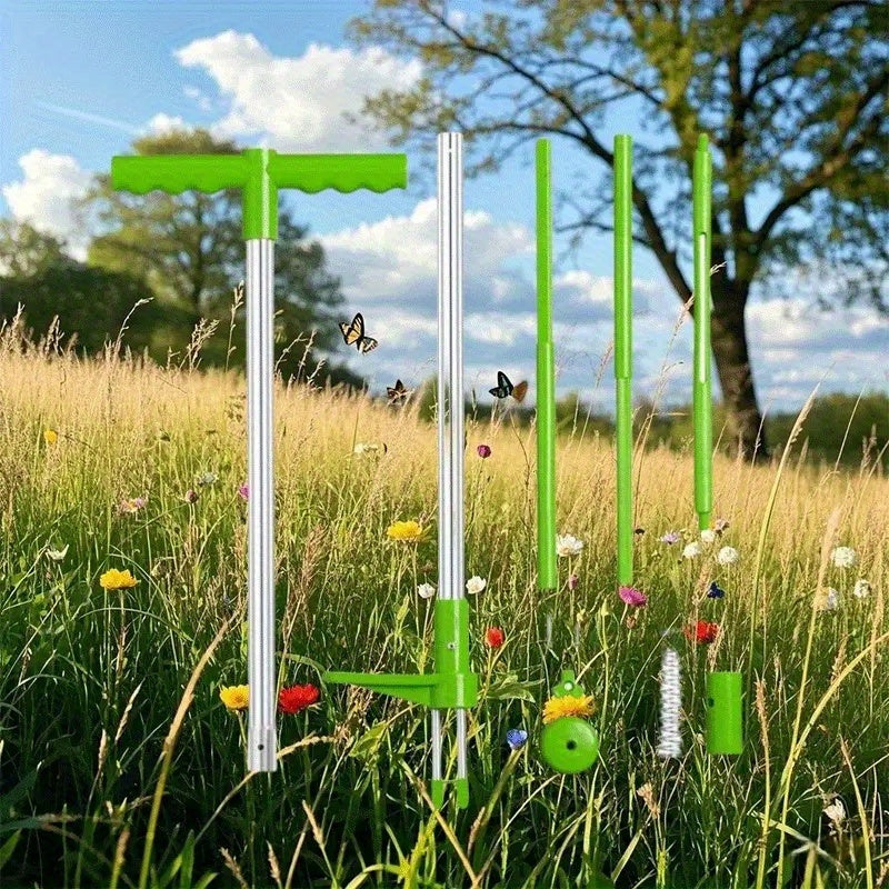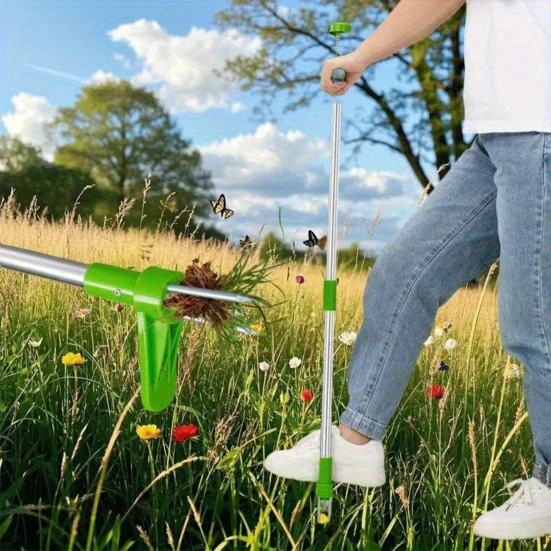 Juego de Herramientas para Deshierbe de 12 Escenas: Mango de Aleación de Aluminio Reforzado y Diseño con Pedal, Tubos Doble Articulados Desmontables – Rastrillo Manual Sin Esfuerzo para Céspedes y Jardines, ¡Sin Necesidad de Energía!