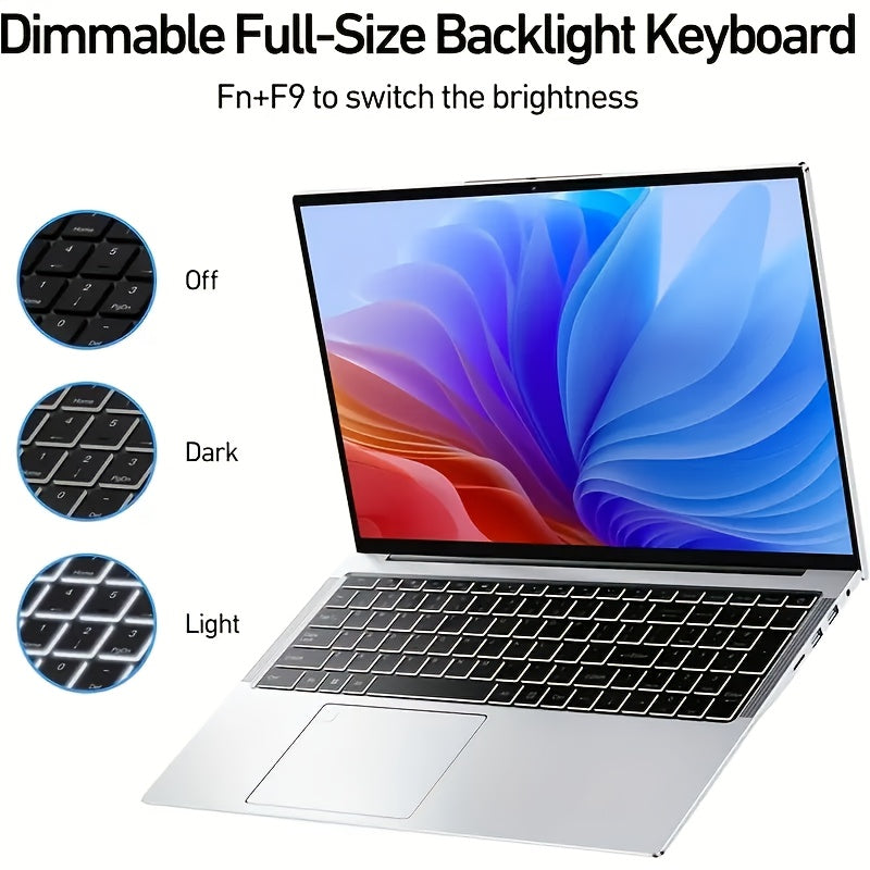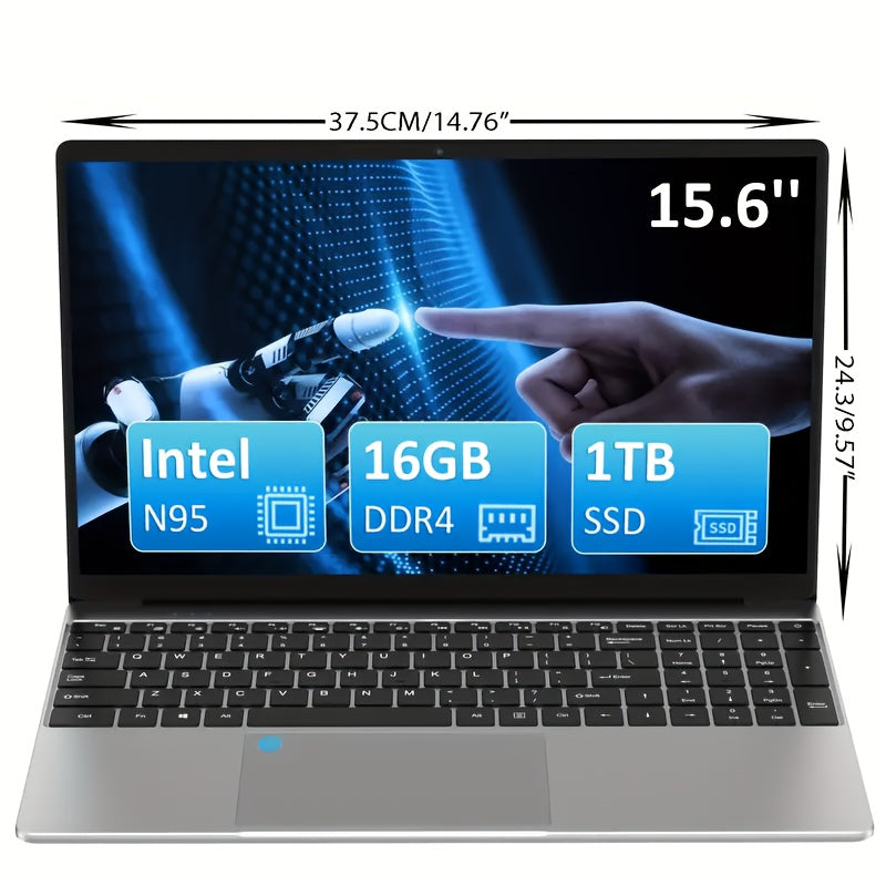 Laptop delgada y ligera para negocios 2025, pantalla grande FHD IPS de 15.6 pulgadas, 16GB RAM, 1TB SSD PCIe, Intel 12va generación N95, asistente de oficina, lector de huella digital, teclado retroiluminado, cámara web, WiFi dual banda 5G, ideal para es