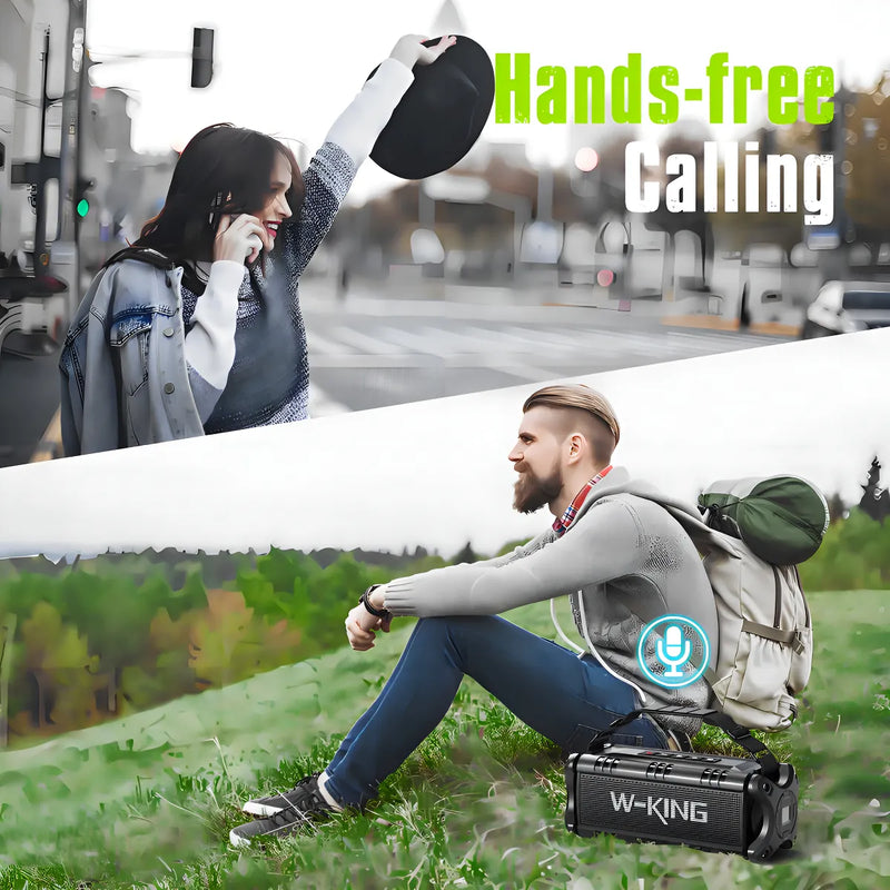 La Bocina Bluetooth W-KING de 50W IPX6 es resistente al agua y perfecta para uso en exteriores. Este dispositivo portátil cuenta con un subwoofer que proporciona una profundidad de sonido excepcional.
