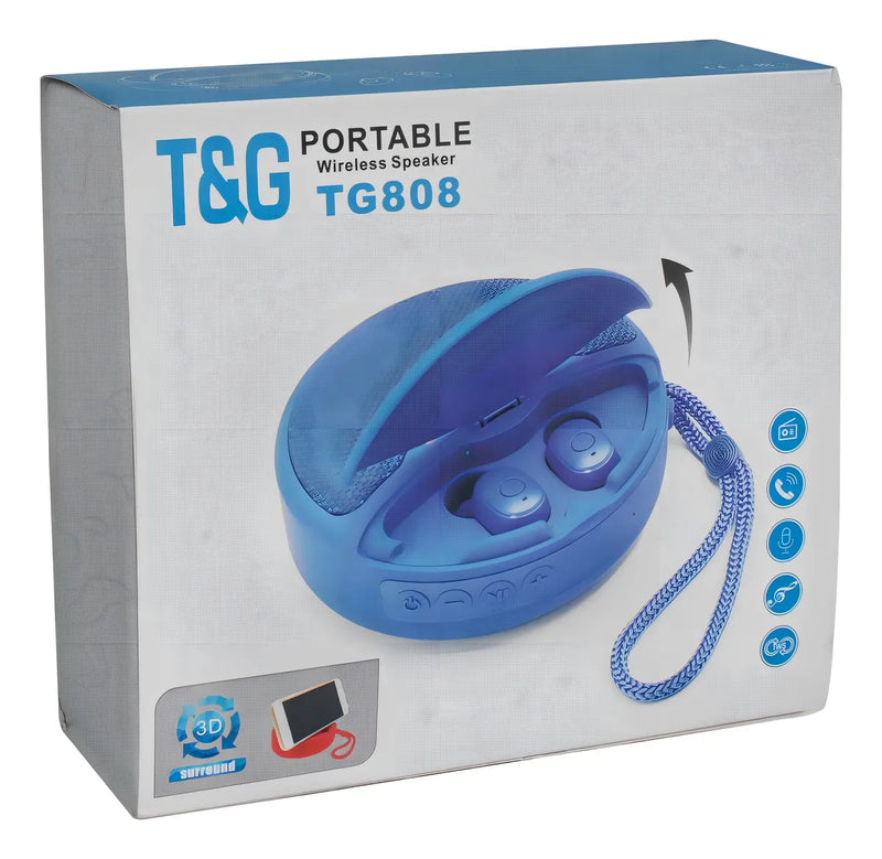 Parlante Auricular Inalambrico Bt Tws T&g 2 En1 Tg808 Color Negro