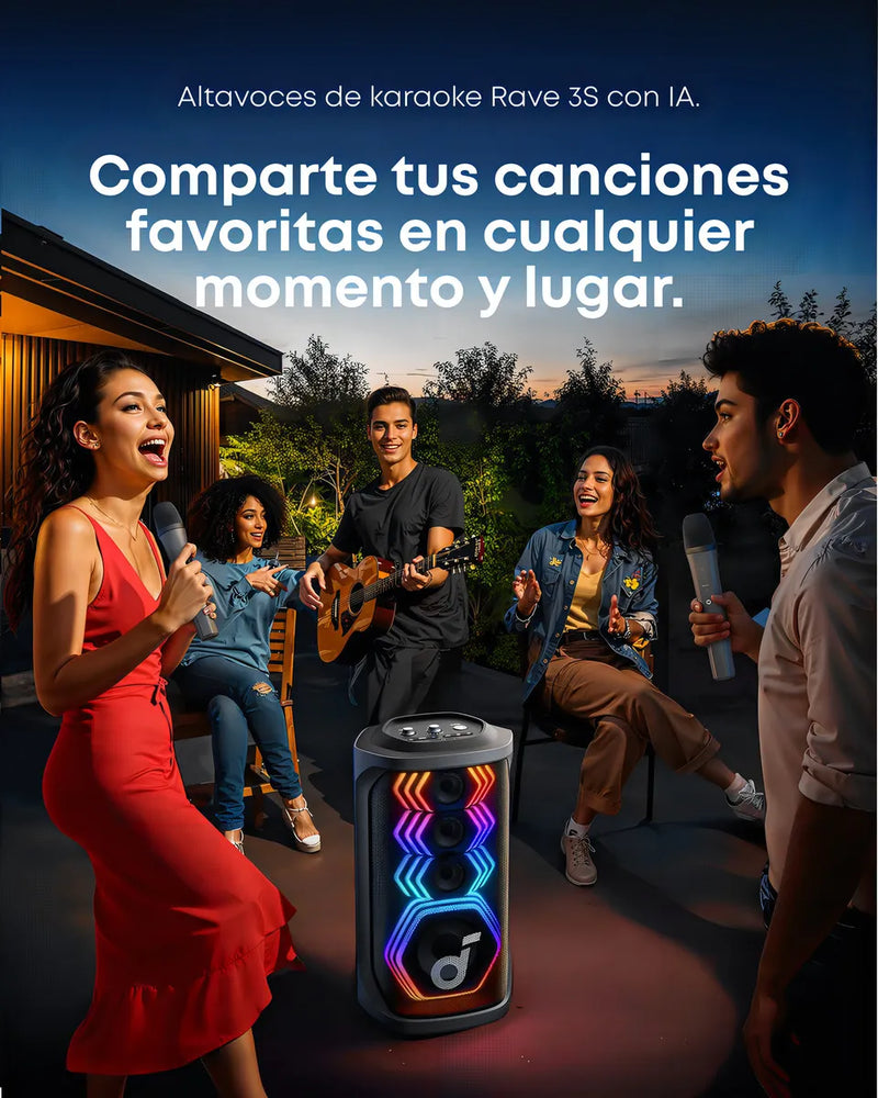 Parlante Bluetooth Soundcore Rave 3s Con 2 Microfonos 200w Color Negro