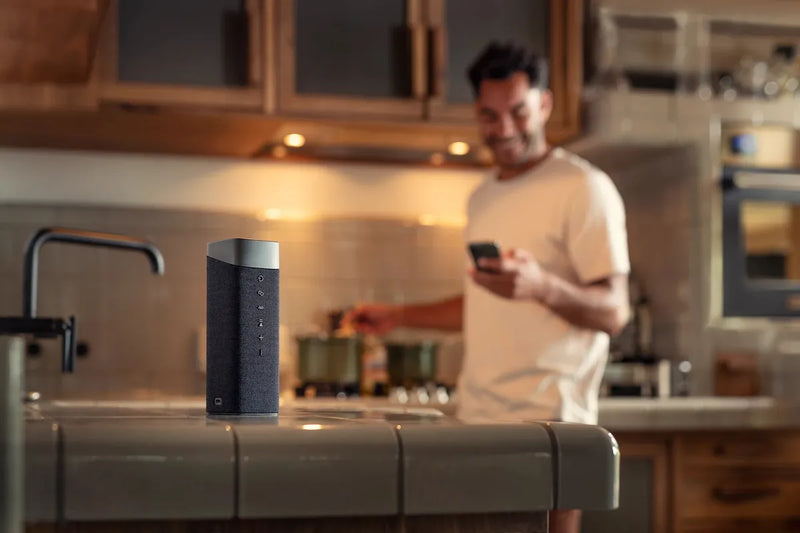 Desde el entrenamiento por la mañana hasta la cena en el balcón, este altavoz Bluetooth reproduce música con estilo. Los botones en relieve te permiten controlar la reproducción, el emparejamiento estéreo, la conexión Bluetooth y mucho más. El orificio del altavoz es práctico si quieres usar un cordón de transporte.