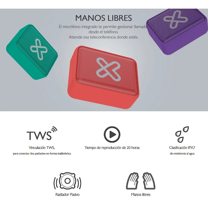 Disfruta de un sonido inigualable en tu casa, el jardín, la piscina o cualquier lugar a donde vayas con el parlante inalámbrico portátil KBS-025. Su diseño liviano y ultra compacto hace que puedas deslizarlo en un bolsillo o mochila con facilidad, y hasta cargarlo cómodamente en la palma de la mano. El parlante está equipado con tecnología TWS (con verdadera conexión inalámbrica estéreo) para reproducir música a través de dos unidades idénticas conectadas simultáneamente, con una potencia total de salida de 6 watts.