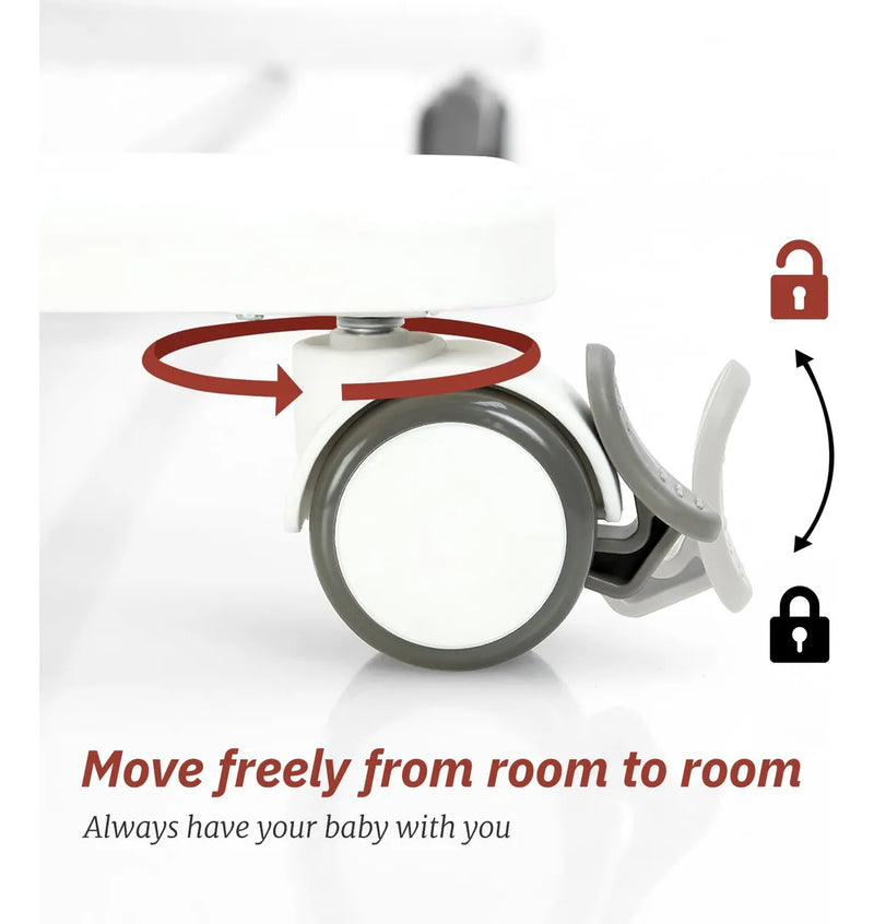 Movimiento libre: ruedas universales de 360 con frenos permiten que nuestra cuna se mueva silenciosamente sin arruinar el suelo. Puedes desbloquearlo y moverlo fácilmente para mantener a los recién nacidos a la vista en todo momento