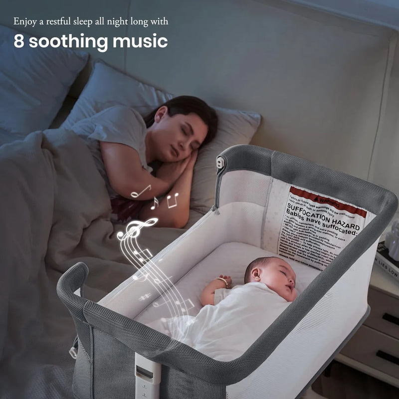 Moisés mecedor para cuna de noche automática para bebé, cuna eléctrica de 5 alturas ajustable para bebés cuna mecedora automática inteligente 3 en 1 con ruedas, gris oscuro