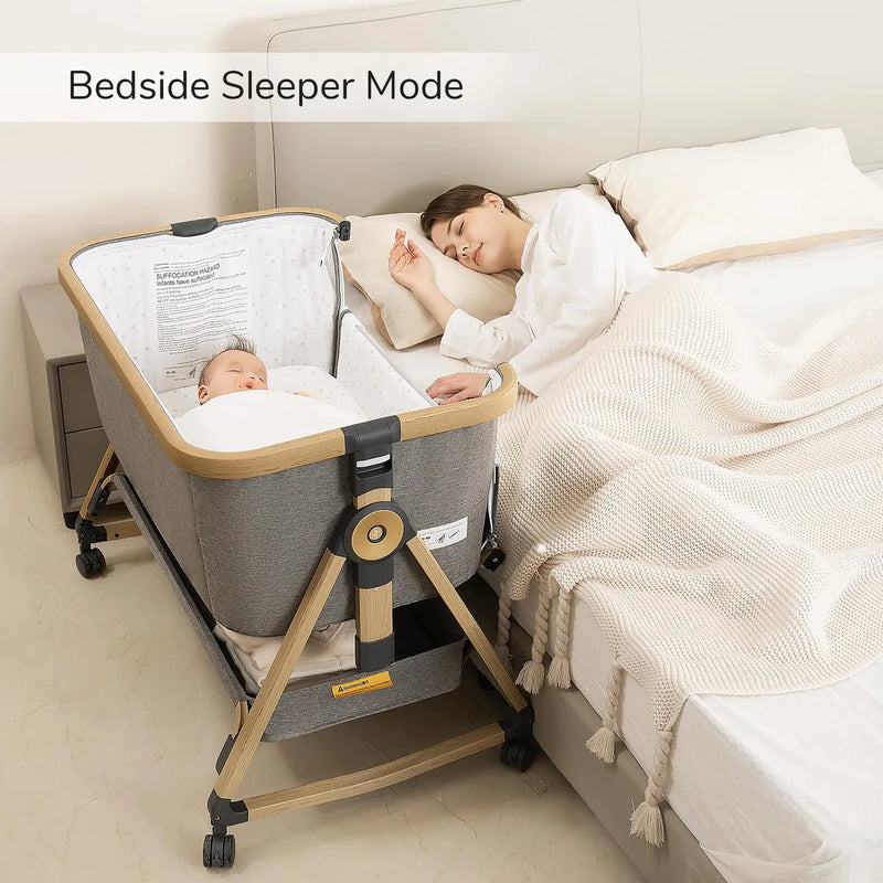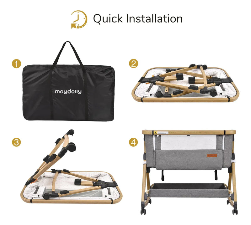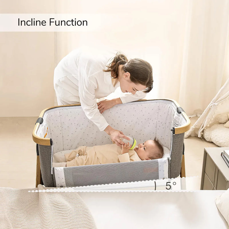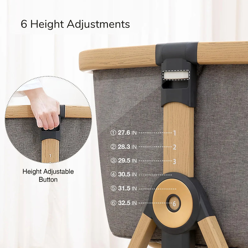 Fácil de abrir/plegar: mecanismo avanzado de apertura y plegado, por lo que el moisés se puede configurar en 35 segundos. Riel lateral ajustable y sistema de conexión permanece en su lugar para dormir de lado más 6 ajustadores de altura y opción de inclinación para diferentes alturas de tu cama