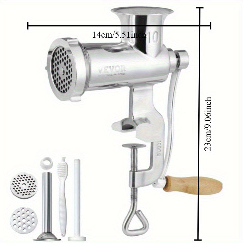 Molino de carne manual de acero inoxidable - Herramienta de cocina con manivela para picar carne y verduras, procesador de alimentos multifuncional no eléctrico con mango ergonómico, diseño duradero para cocina en casa, molino de verduras, acabado metáli