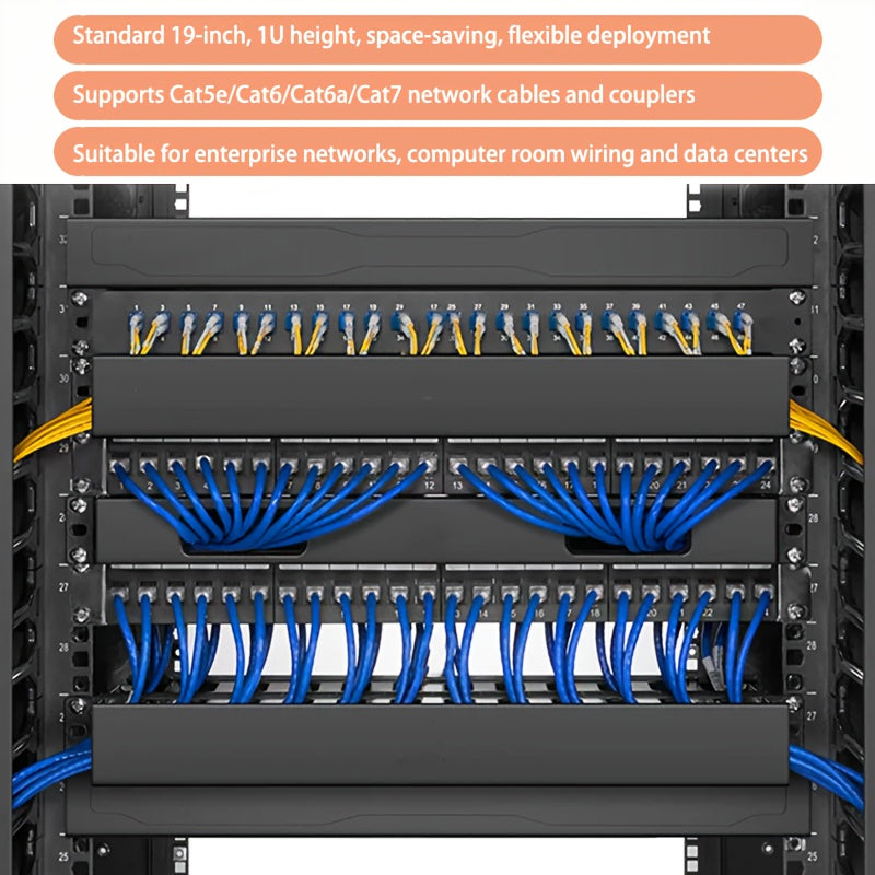 Panel de Conexión Keystone 1U de 24 Puertos, Montaje en Rack Metálico de 19 Pulgadas, Espesor Aumentado de 1.5mm, Tomas Keystone Cat6/Cat6a/Cat7 (Vendidas por Separado), Barra de Gestión de Cables Incluida,