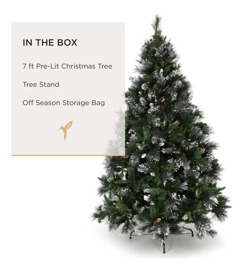 Papyrus Arbol de Navidad artificial preiluminado de 7 pies, pino de Carolina, conos de pino, luces blancas calidas, incluye soporte y bolsa de almacenamiento