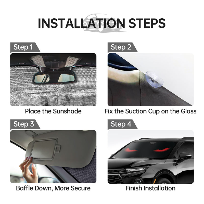 Parasol para Coche con Ojos Rojos, Bloquea los Rayos UV en el Parabrisas - Protector Plegable de Sol con 4 Ventosas Gratis Mantiene Fresco la Playa y Paisajes Costeros