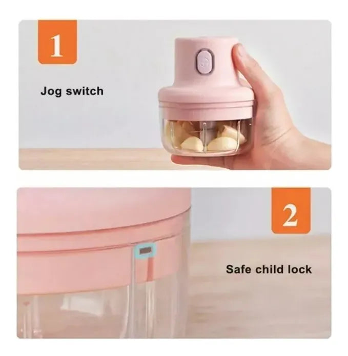 Picador Eléctrico Recargable 250ml Cortador De Verduras Rosa
